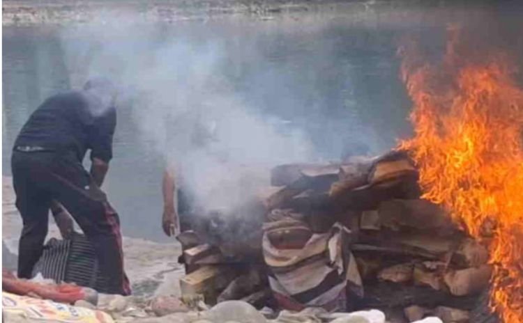 जब काफी कोशिशों के बाद भी गीली लकड़ियों ने आग नहीं पकड़ी, तो हारकर परिजनों को वह कदम उठाना पड़ा जो किसी भी हिंदू रीति-रिवाज और मानवीय संवेदना के खिलाफ है।