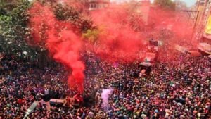 इंदौर। रंगपंचमी के मौके पर देश के सबसे स्वच्छ शहर इंदौर में ऐतिहासिक गेर निकाली गई। हर तरफ रंग में सरावोर लोग ही लोग नजर आ रहे थे। इतना ही नहीं गेर में इस बार पांच लाख से अधिक लोग शामिल हुए। जो यह एक रिकार्ड है। हालांकि गेर के दौरान एक बड़ा हादसा भी हो गया है। ट्रैक्टर का पहिया एक 45 वर्षीय शख्स के पेट के ऊपर से निकल गया, जिससे उसकी मौत हो गई। इस हृदय विदारक हादसे के बाद मुख्यमंत्री मोहन यादव ने गेर में शामिल होने का अपना कार्यक्रम भी कैंसिल कर दिया है।