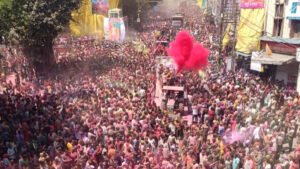 इंदौर में पिछले 75 सालों से लगातार निकलने वाली रंगपंचमी की गेर इस बार पहले से भी ज्यादा भव्य और रंगीन रही। पूरा क्षेत्र रंगों से सराबोर है। टैंकरों से रंग और पानी की बौछार कई फीट ऊपर तक की जा रही है। वहीं तोपों से गुलाल उड़ाया गया। इस आयोजन में लाखों लीटर पानी और 25 हजार किलो से ज्यादा गुलाल उड़ाया गया। राजवाड़ा और उससे जुड़े रास्तों पर लगभग 5-6 किमी के दायरे में सड़कें पूरी तरह रंगों से सराबोर हो गईं।