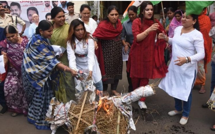 मध्यप्रदेश कांग्रेस कार्यालय के सामने जुटी कार्यकर्ताओं ने नारेबाजी करते हुए उनका पुतला दहन किया।