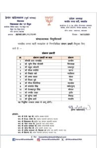 भारतीय जनता पार्टी ने प्रदेश कार्य समिति की घोषणा के 22 दिन बाद संभागीय प्रभारी की नियुक्ति कर दी है।