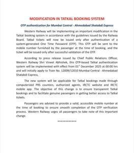इसके बाद अक्टूबर 2025 में सभी सामान्य ऑनलाइन टिकट बुकिंग के लिए भी ओटीपी सत्यापन को अनिवार्य कर दिया गया। यात्रियों ने इन दोनों बदलावों को सहजता से स्वीकार किया। नतीजा हुआ कि ऑनलाइन टिकट में पारदर्शिता बढ़ी। फर्जी बुकिंगकम हुई और वास्तविक यात्रियों को टिकट मिलने की संभावना बढ़ गई।