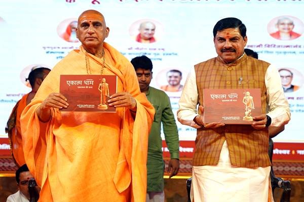 समारोह की अध्यक्षता जूनापीठाधीश्वर आचार्य महामण्डलेश्वर स्वामी अवधेशानन्द गिरि ने की। इस अवसर पर महर्षि संदीपनी वेद विद्या पीठ द्वारा वैदिक मंत्रोच्चार के साथ मुख्यमंत्री डॉ. यादव का स्वागत किया गया। मुख्यमंत्री ने एकात्म धाम की यज्ञशाला की पवित्र यज्ञ-वेदी में आहुति दी। उन्होंने यज्ञ की परिक्रमा कर प्रदेशवासियों की सुख, समृद्धि एवं खुशहाली की प्रार्थना की। मुख्यमंत्री डॉ. यादव ने साधु-संतों के साथ आदिगुरु शंकराचार्य की प्रतिमा के समक्ष दीप प्रज्ज्वलन एवं पुष्पांजलि अर्पित की।