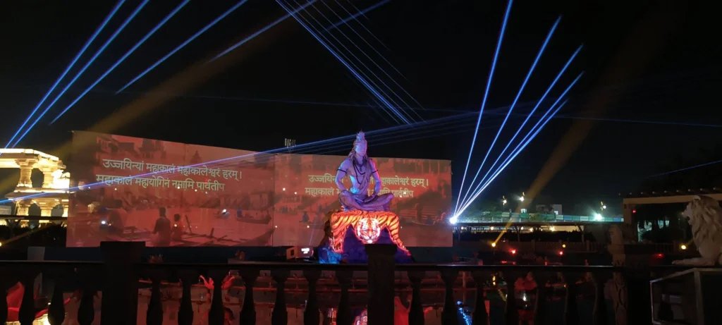 उज्जैन के बाबा महाकाल के मंदिर में वाटर स्क्रीन लाइट एंड साउंड शो श्रद्धालुओं के लिए खोल दिया गया है। शो में भगवान महाकाल की संपूर्ण गाथा, शिप्रा नदी और उज्जैन का इतिहास इनोवेटिव तरीके से दिखाया गया, जिससे आज के युवा बाबा महाकाल और सनातन धर्म के बारे में जान सकें। शो 30 मिनट लंबा है, जिसमें इतिहास को पानी की स्क्रीन (वाटर स्क्रीन) पर प्रोजेक्शन के माध्यम से श्रद्धालुओं को दिखाया जा रहा है। इस प्रोजेक्ट का उद्घाटन दीपावली पर किया गया और पहले दिन मुख्यमंत्री मोहन यादव ने शो देखा था। इस परियोजना को स्मार्ट सिटी और मध्य प्रदेश टूरिज्म ने मिलकर 18 करोड़ खर्च कर बनाया है।