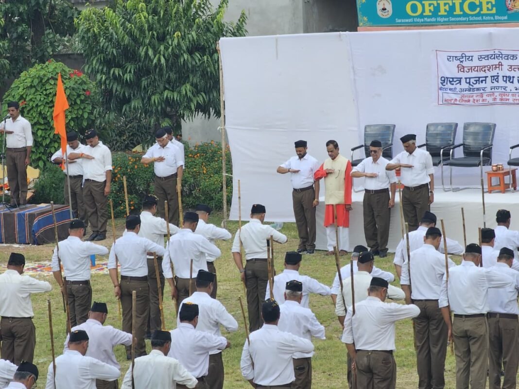 राष्ट्रीय स्वयंसेवक संघ के शताब्दी वर्ष के उपलक्ष्य में विजयादशमी के पावन पर्व पर गुरुवार को भोपाल महानगर के 12 विभिन्न नगरों, खंडों और बस्तियों में पथ संचलन निकाले गए।