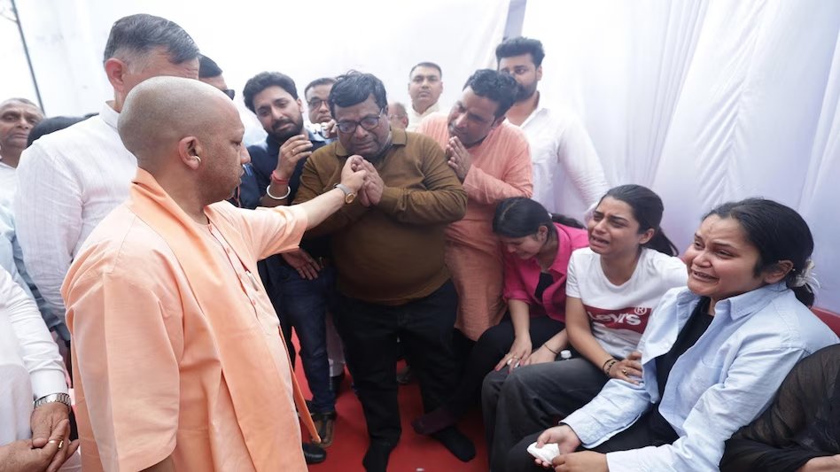 कानपुर। जम्मू-कश्मीर के बायसरन घाटी में दहशतगर्दों की गोलियां का निशाना बने कानपुर के शुभम द्विवेदी का गुरुवार को राजकीय सम्मान के साथ अंतिम संस्कार कर दिया है। शुभम को अंतिम विदाई देने मुख्यमंत्री योगी आदित्यनाथ भी उनके आवास पहुंचे और परिजनों से मिलकर उन्हें सांत्वना दी। दिल दहलाने वाली बात यह रही की शुभम की पत्नी ऐशान्या ने सीएम योगी देखते ही उसकी आंखे छलक पड़ी और फूट-फूटकर खूब रोई। इस दौरा ऐशान्या ने योगी से दहशतगर्दों को कड़ी से कड़ी सजा दिलाने की भी मांग की। वहीं सीएम योगी ने ऐशान्या को आश्वस्त करते हुए कहा कि सरकार पर भरोसा रखिए। आतंकवादियों को ऐसी सजा मिलेगी की उनकी रूह कांप जाएगी।